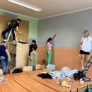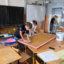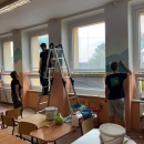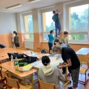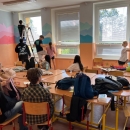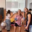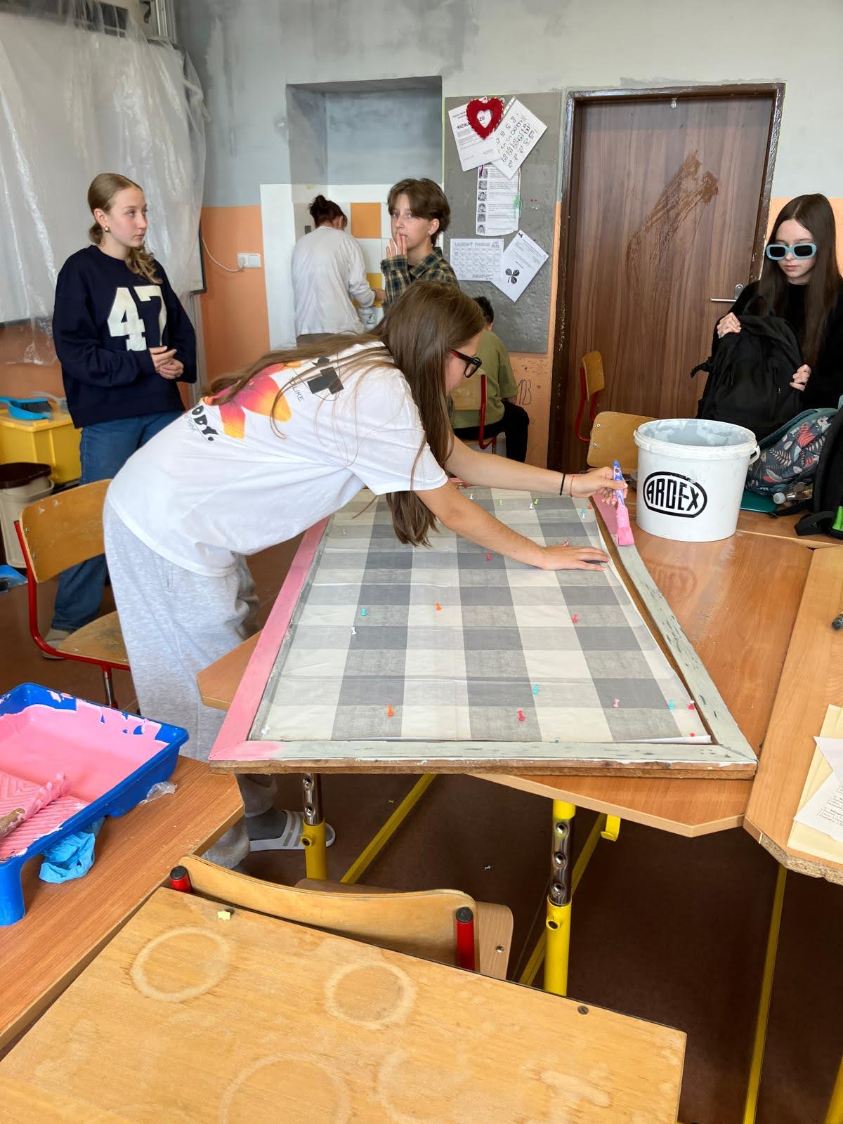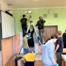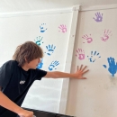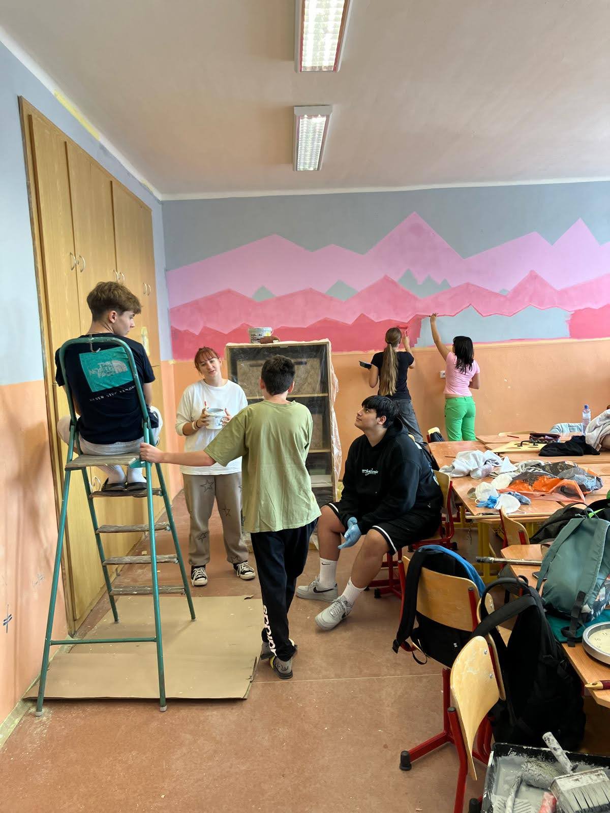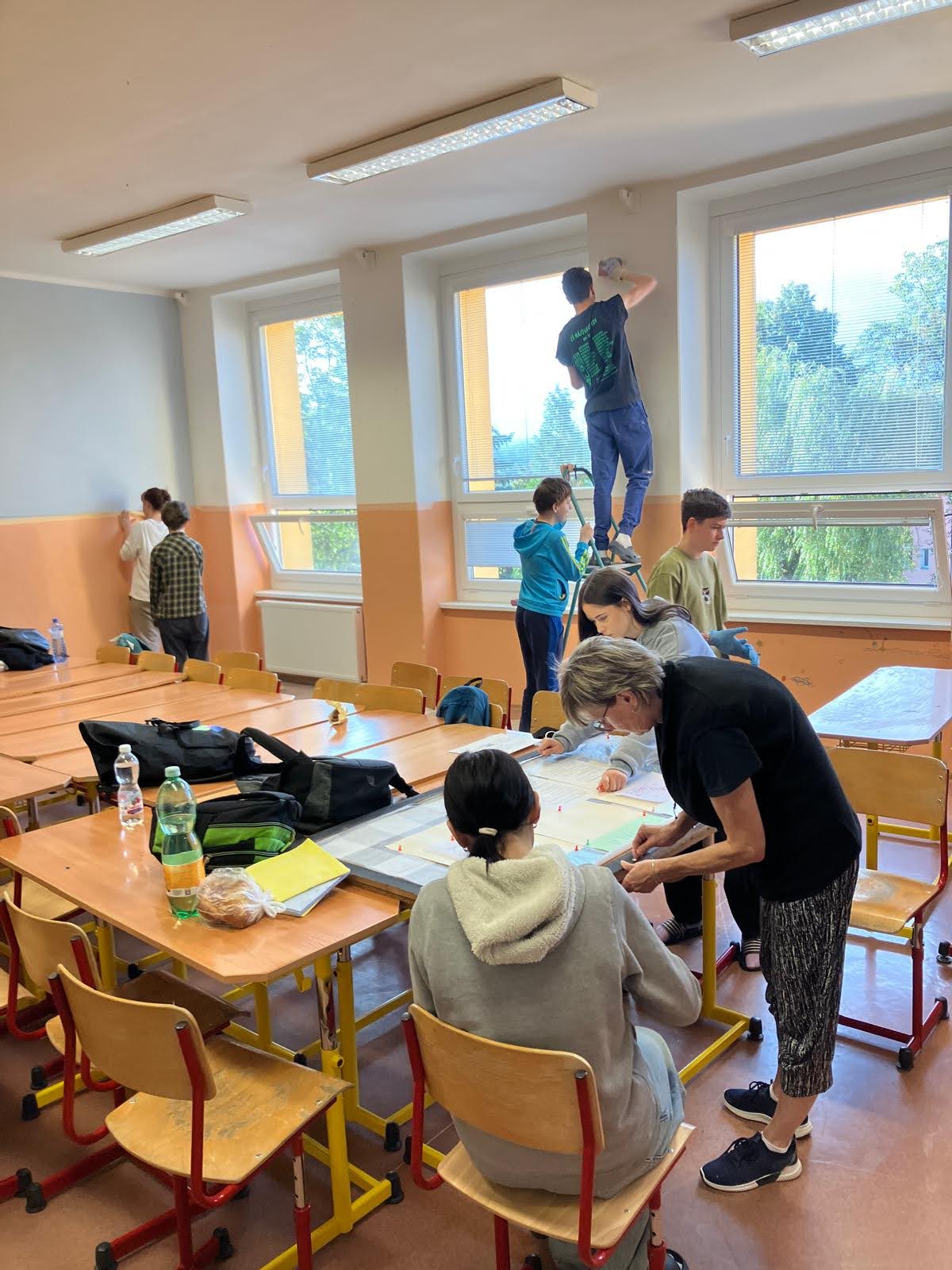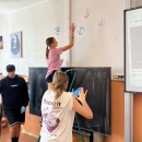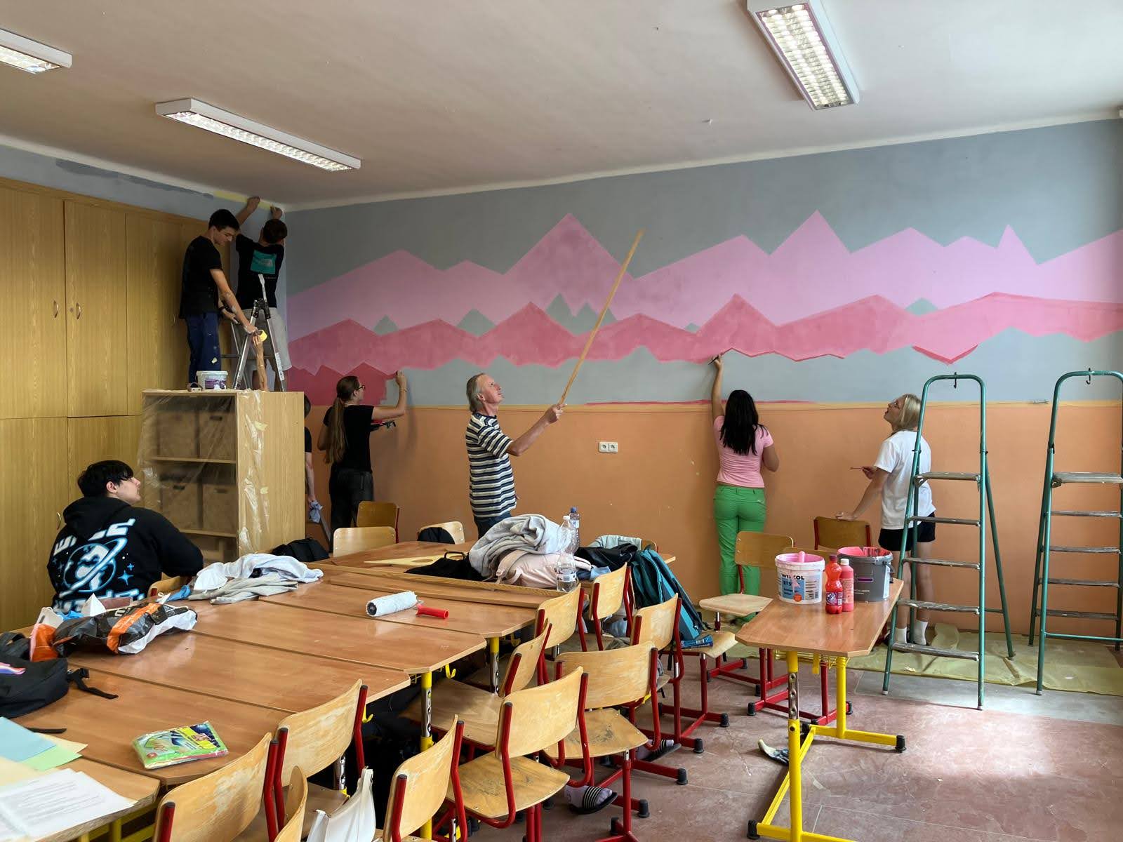 I takto mohly vypadat adaptační dny. Třída 9.B ocenila letošní novinku kmenových tříd na druhém stupni a tu SVOJI třídu si žáci rozhodli vyzdobit dle svých představ. Chopili se barev a svou představu takto dokonale ztvárnili. A že to dělají pro budoucí spolužáky jim vůbec nevadí. Ta stopa po nich zůstane! A slova samotných žáků: Adapťák po našem aneb 9.B v akci! Zhodnotili jsme situaci a došli k jasnému závěru – zkrášlit si vlastní teritorium bude ten pravý týmový zážitek. Tak jsme vzali štětce, barvy a hlavně odvahu – a proměnili naši třídu podle vlastních představ! Ano, šlo to skoro bez nehod. (Kromě pár incidentů s barvou jinde, než kde má být… :)) Nakonec jsme celou práci a naše působení na škole zpečetili dlaňovými podpisy na zdi nad tabulí. Celou operaci šéfovaly paní asistentka a paní třídní učitelka, které nás korigovaly a zachraňovaly, když jsme měli geniální nápady. A výsledek? No… podívejte se sami. Třída nám teď září jak Instagramový feed po filtrovací horečce.
