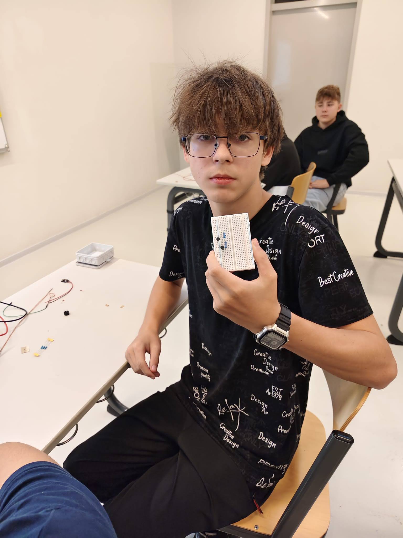 Tým chlapců z osmých tříd ve středu 8. října opět zahájil účast na projektu Inženýr Junior. Tento projekt probíhá pod záštitou Střední průmyslové školy. Aby chlapci tento titul získali musí prokázat dovednosti v oborech elektrotechnika, auto na solární pohon, drony, programování CNC strojů, grafika a robotika. Držíme jim palce, aby uspěli.