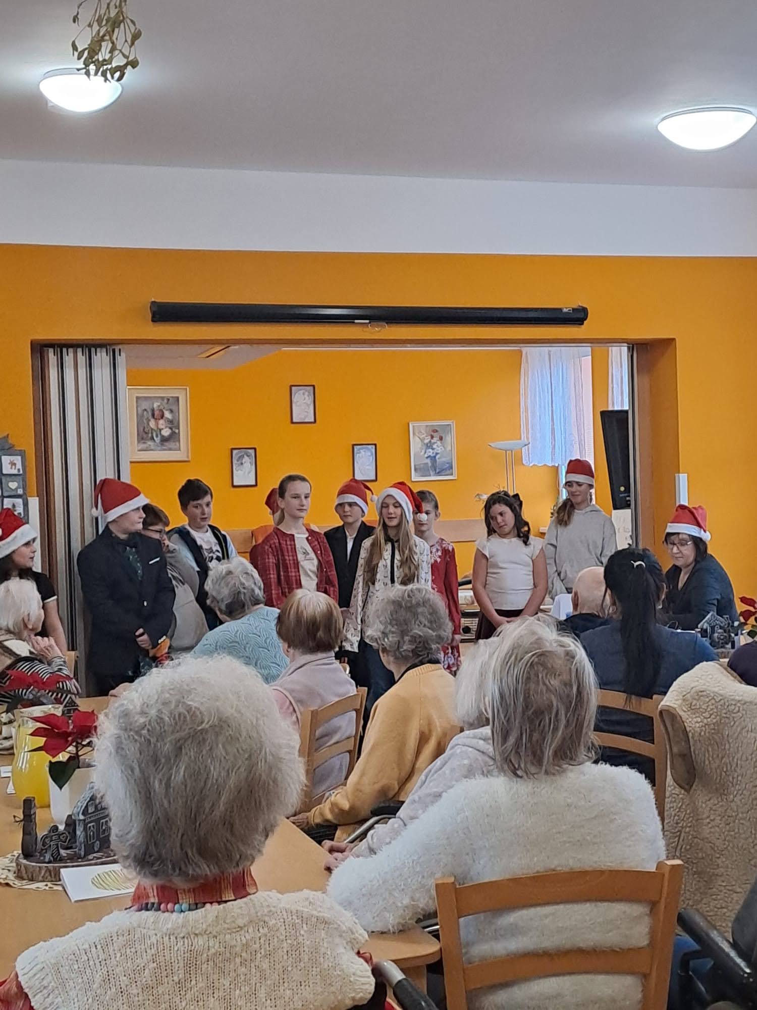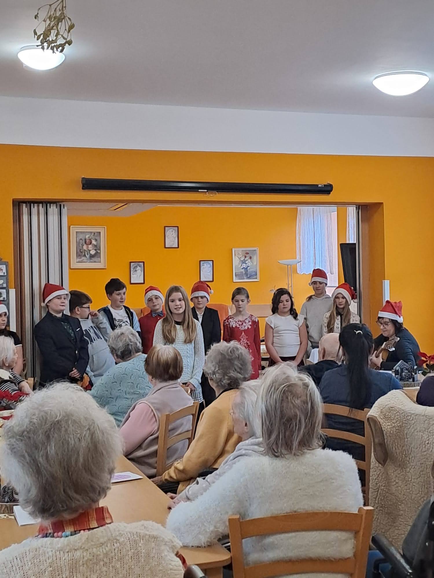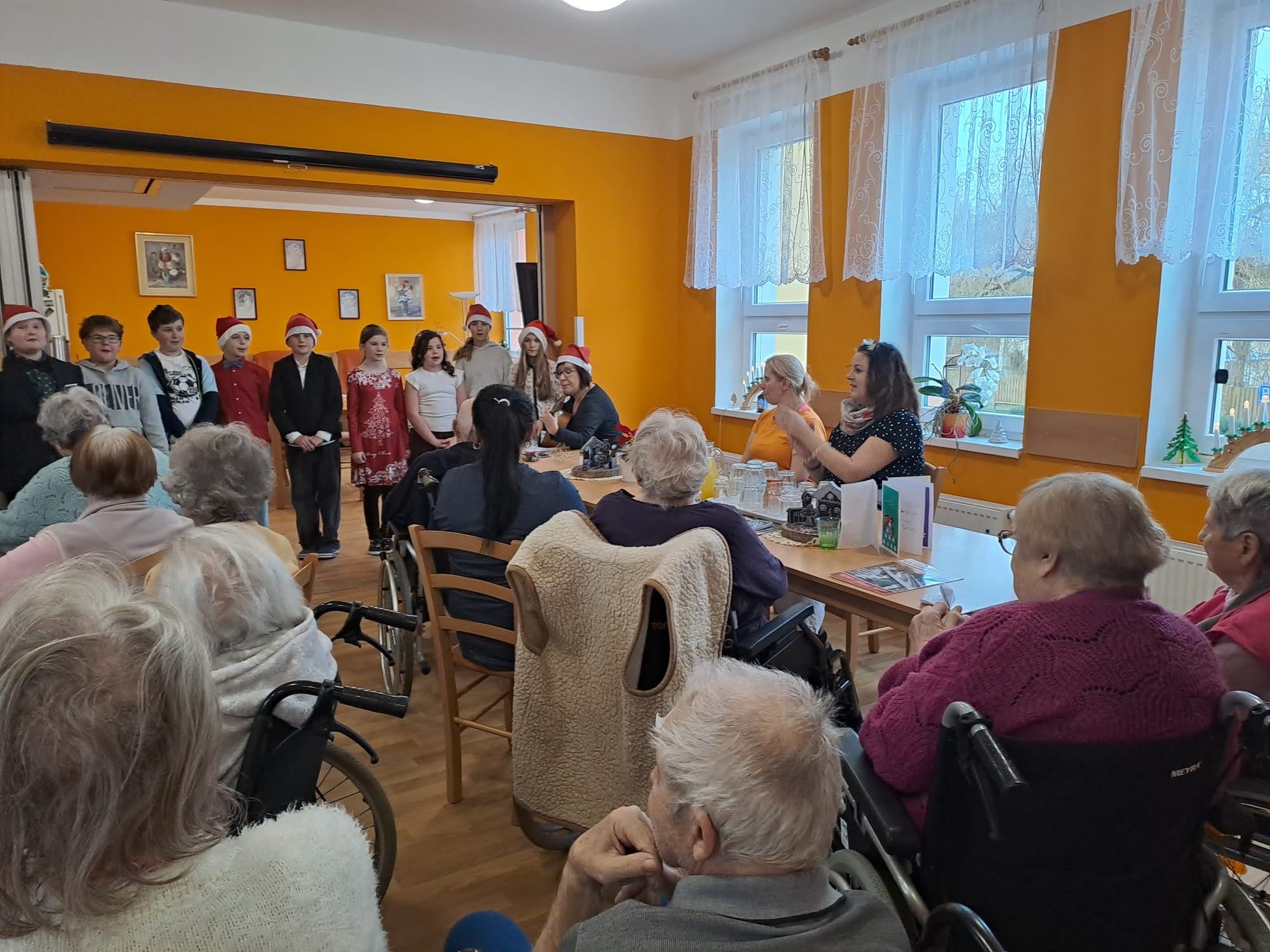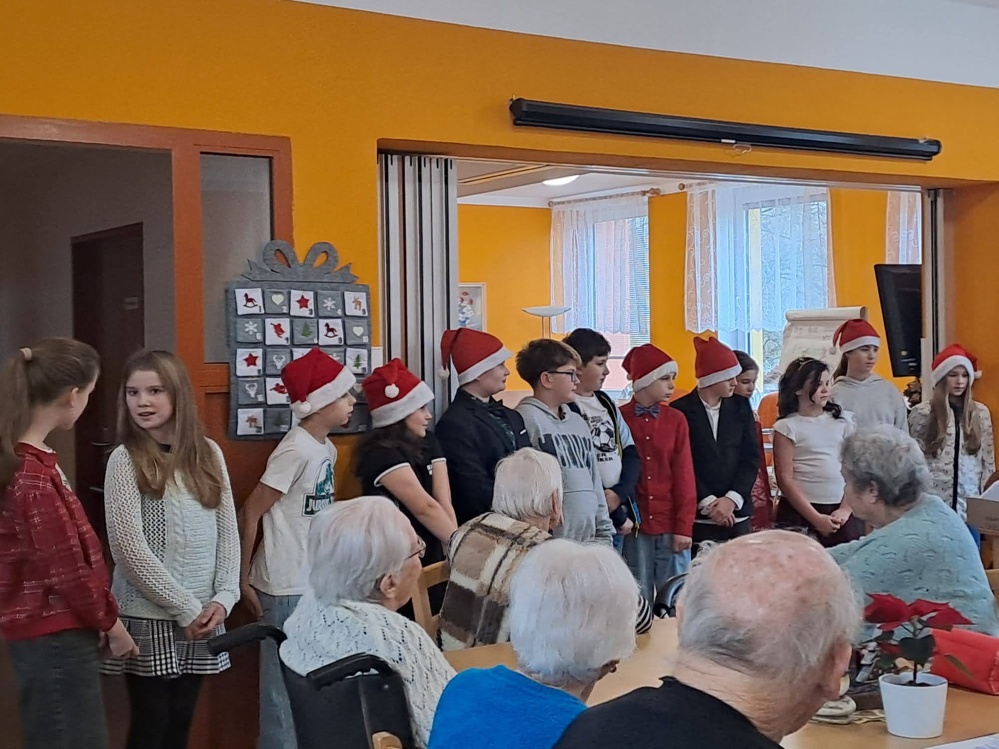 Stalo se již dlouholetou tradicí, že žáci naší školy navštěvují v předvánočním čase babičky a dědečky v Domově pokojného stáří v Ostrově. Ve středu se vypravili děti z 5.A s paní učitelkou Markvartovou opět mezi ně. Společně si užili chvilky s básničkami a ke zpěvu koled se přidalo i osazenstvo Domova. Přáníčka, vyrobená dětmi, udělala všem upřímnou radost.