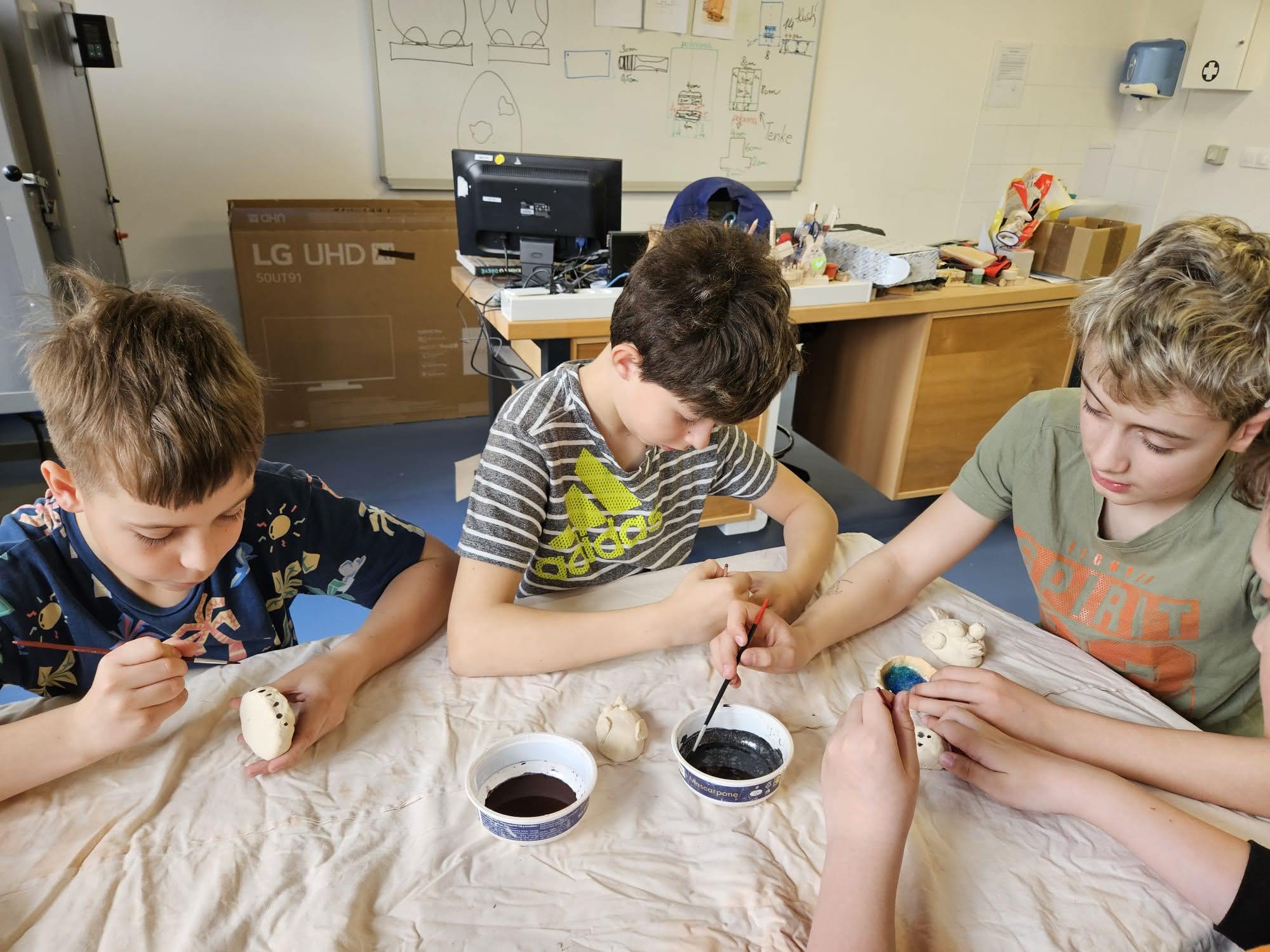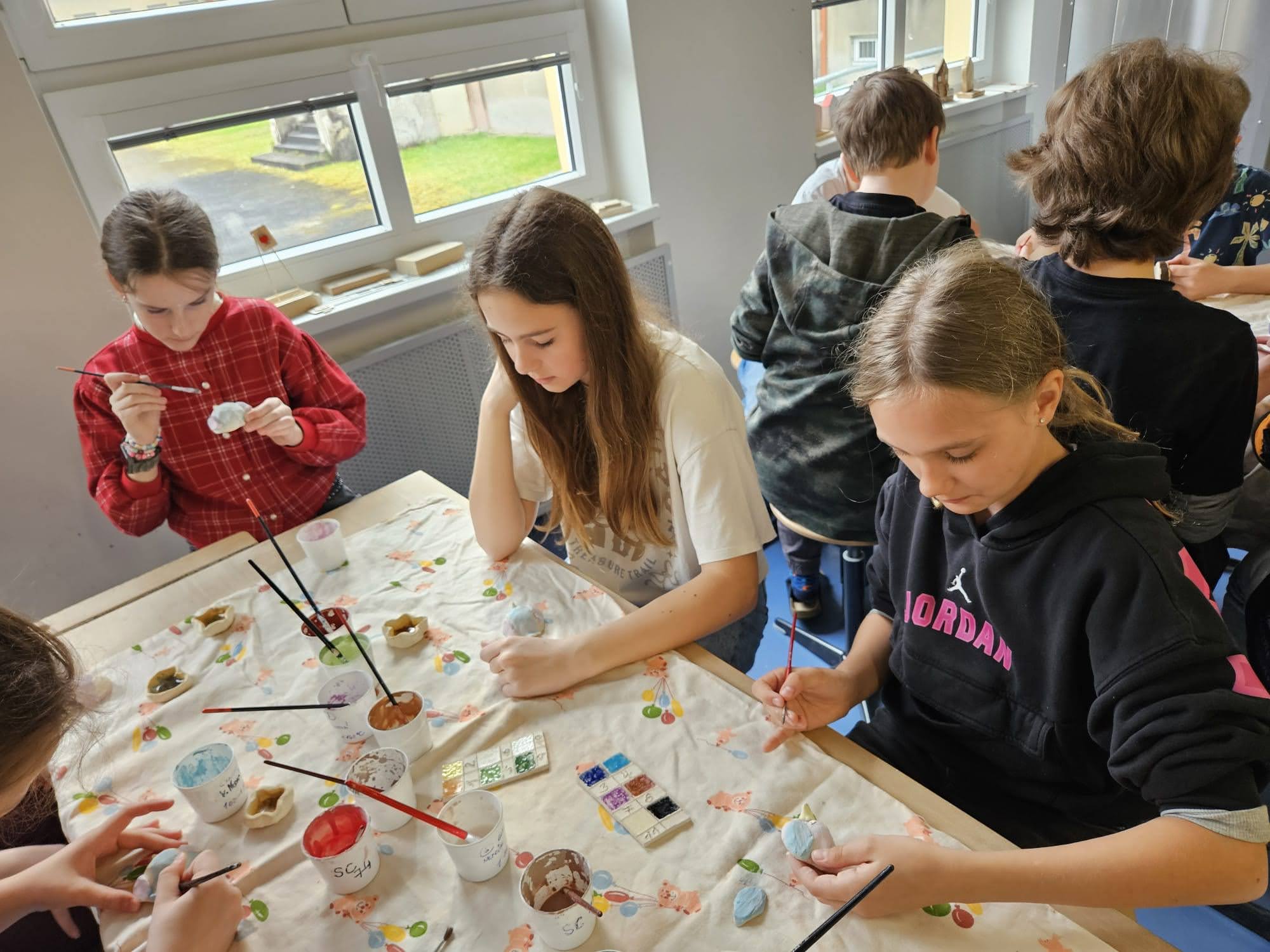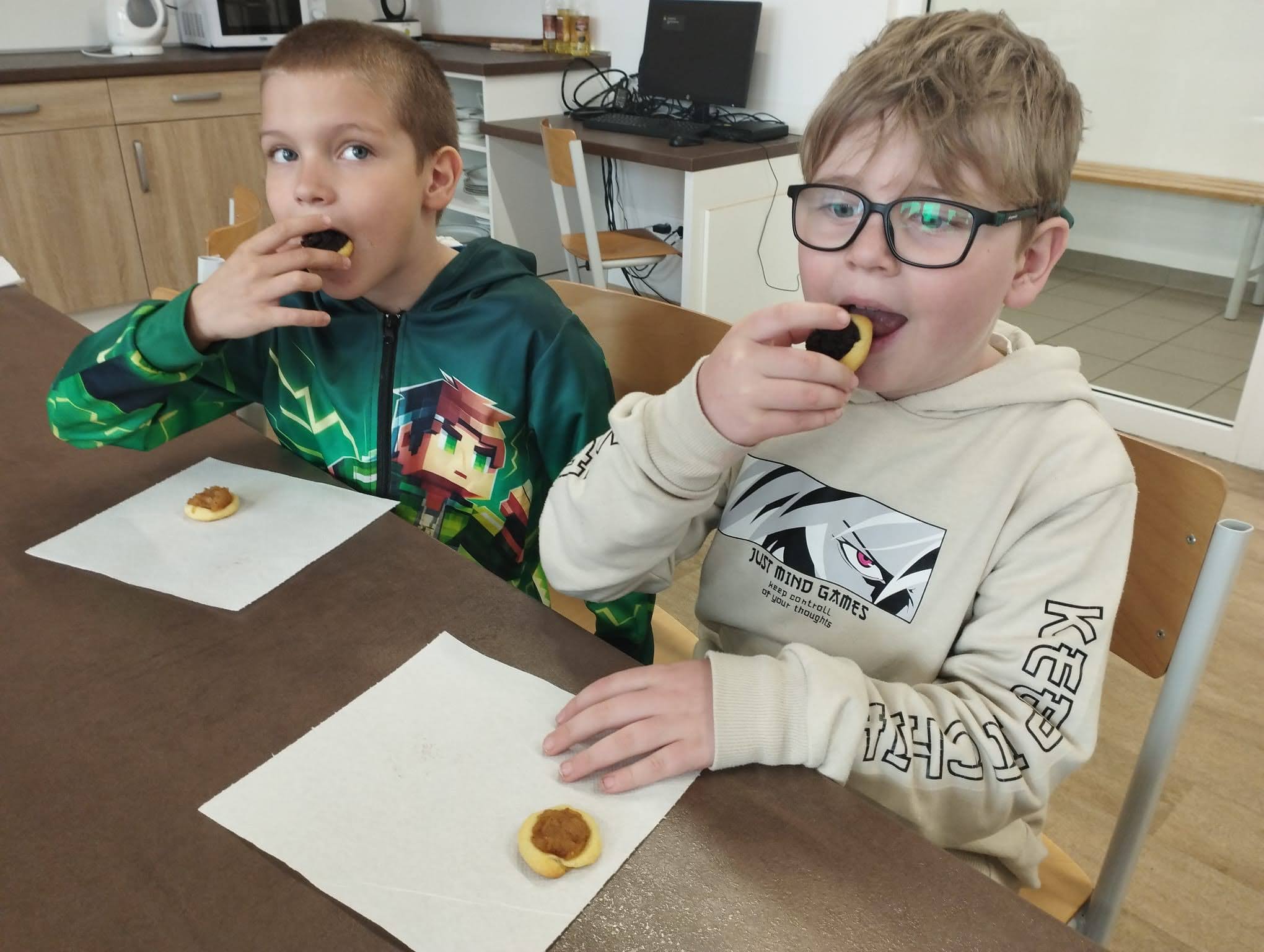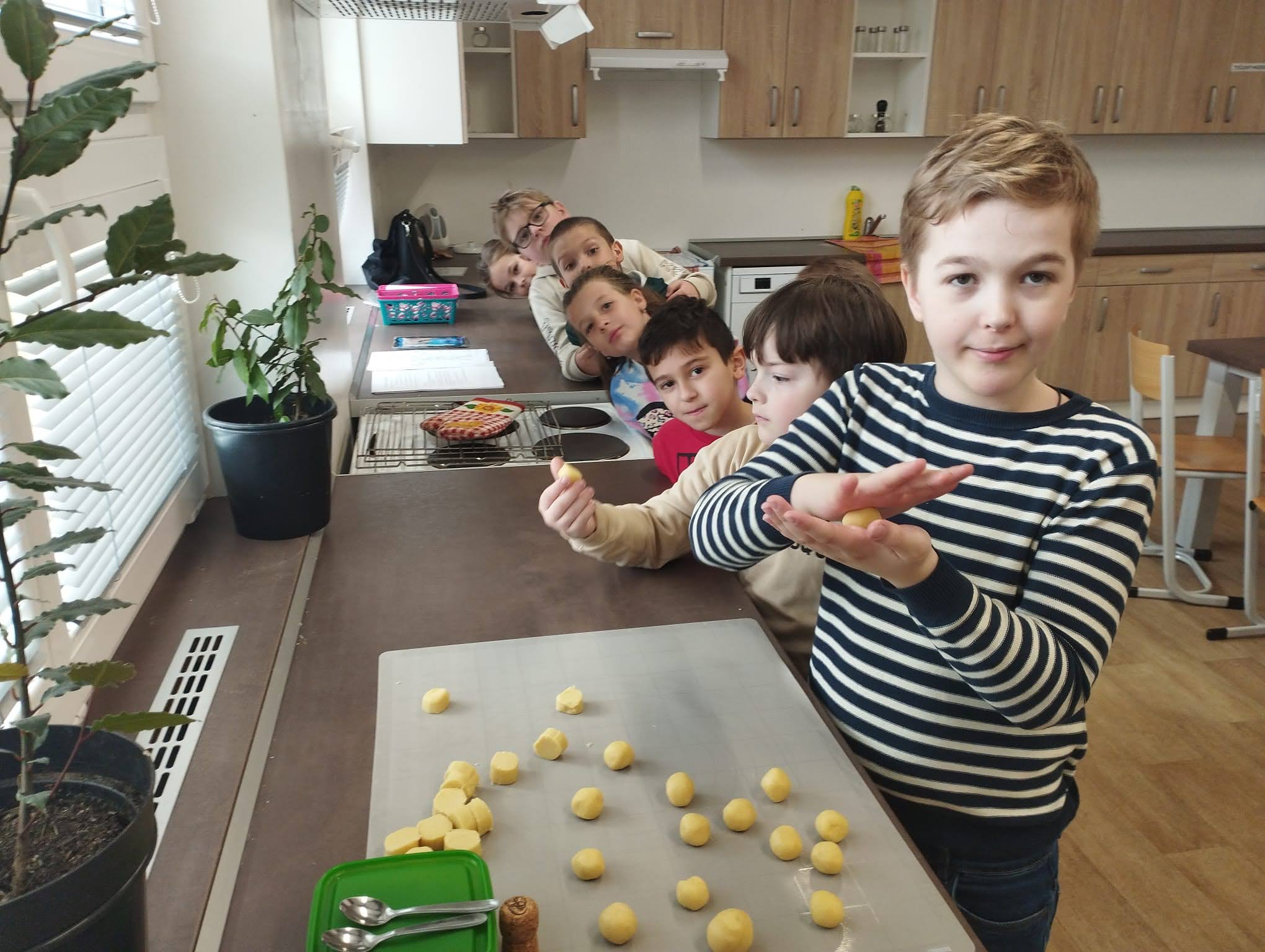 V pondělí 13. dubna se dvě naše třídy vypravily opět na ZŠ Myslbekovu v rámci projektu Udržitelnosti. V kuchyňce si své dobroty podle receptu tentokrát upekly děti z 1.A. Do keramické dílny se vrátili žáci 5.A, aby si zde naglazovali své výrobky.
