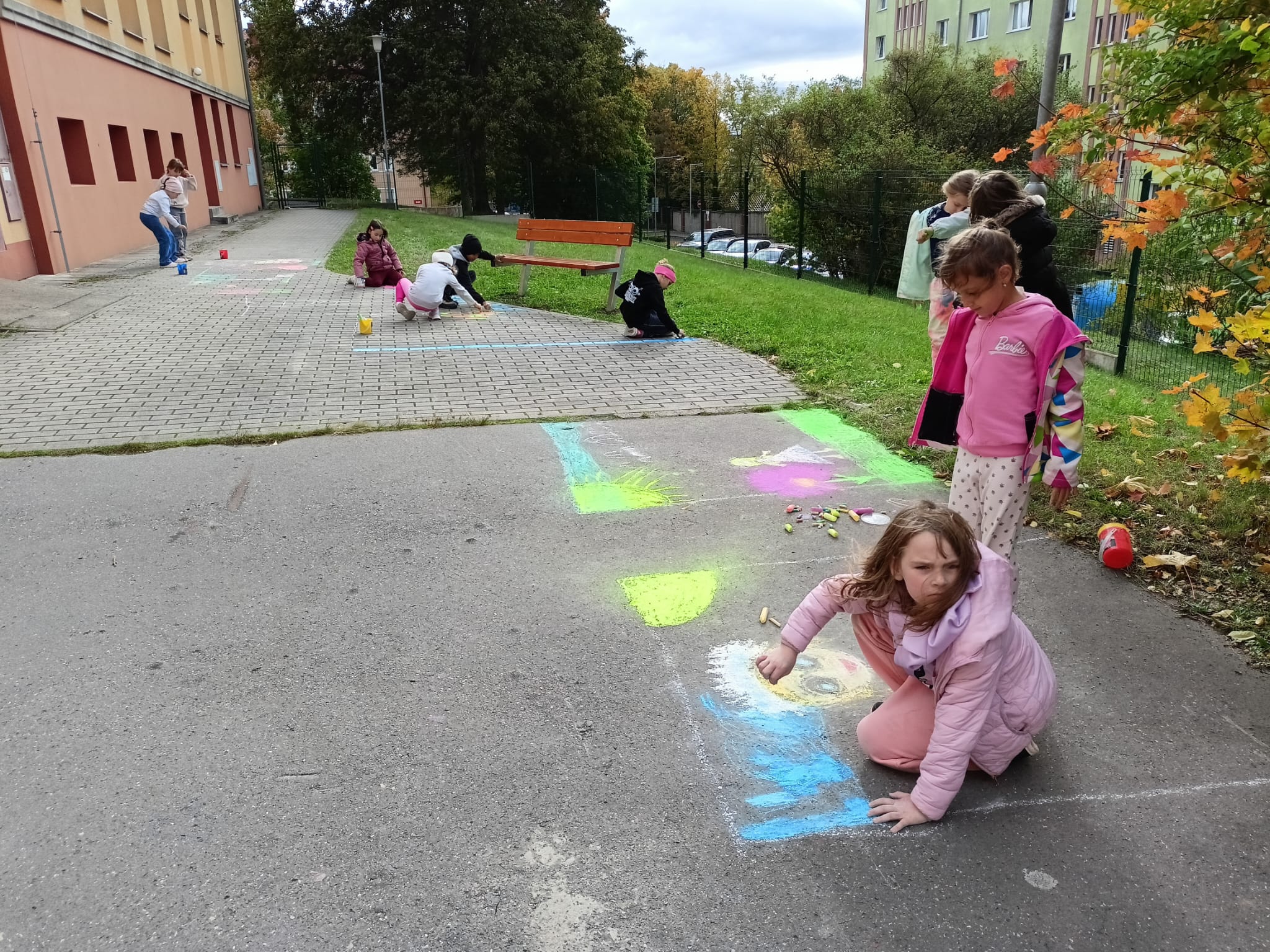 Je tu konec října a já se hlásím s krátkým shrnutím činností školní družiny. Na začátku jsme rozhýbali těla při závodech na koloběžkách. Na školním hřišti proběhly jízdy zručnosti na čas. Aktivně jsme se připravovali na velkou "ostrovskou slávu", kterou je nepochybně FOH. Vzhledem k tomu, že celým festivalem rezonovaly oslavy 60. narozenin Večerníčka, uspořádali jsme soutěž v malování na chodníku. Tématem byly právě 60. narozeniny Večerníčka. Soutěži předcházely besedy v jednotlivých odděleních. Při samotném festivalu jsme navštívili stan na náměstí, kde byla promítána smyčka Večerníčkových pohádek. Před stanem nás přivítali maskoti festivalu, jak jinak, než postavy z večerníčků. V rámci FOH jsme také navštívili filmové promítání, čekal nás Hurvínek. Vrcholem října byla Halloweenská stezka mezi Boreckými rybníky. Celý měsíc se "podzimně" tvořilo. V odděleních i na chodbách se objevili ježečci, draci, mísy s ovocem, barevné listy, zvířátka z kaštanů..., nechyběla ani strašidelná halloweenská výzdoba.