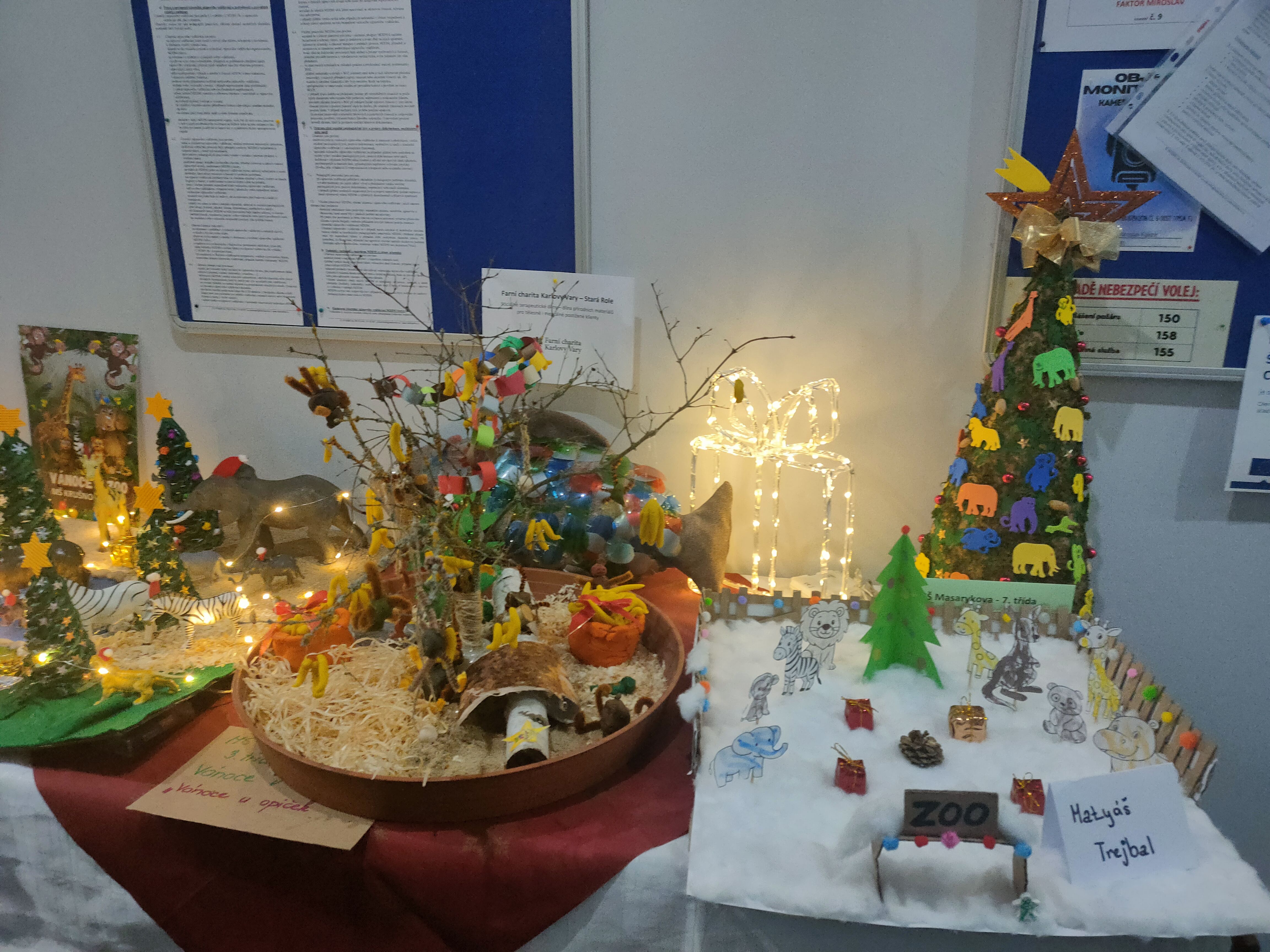 Do konce listopadu probíhala soutěž Městského domu dětí a mládeže VÁNOCE V ZOO. Nyní již se můžete kochat mnoha krásnými výtvory a nápady v přízemí MDDM. Za naši školu vytvořily soutěžní díla třídy: 1.A, 3.A, 4.A a 5.B.
