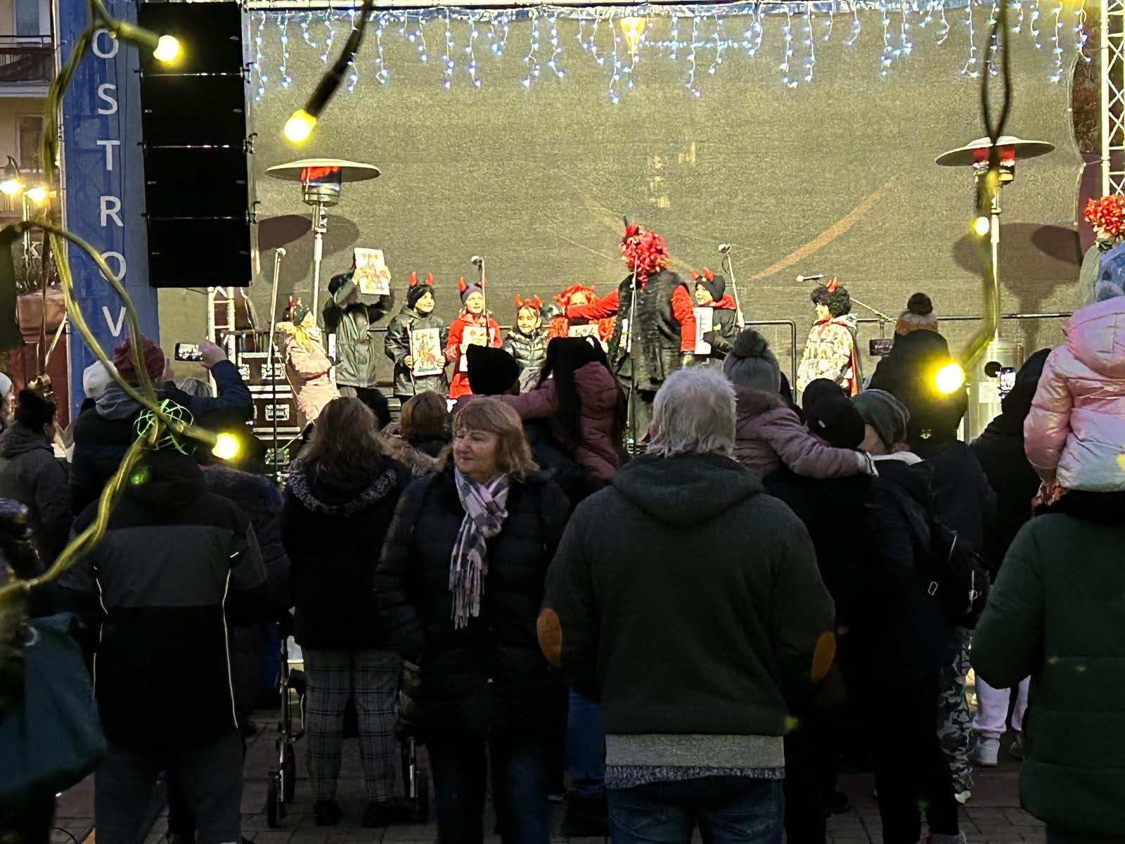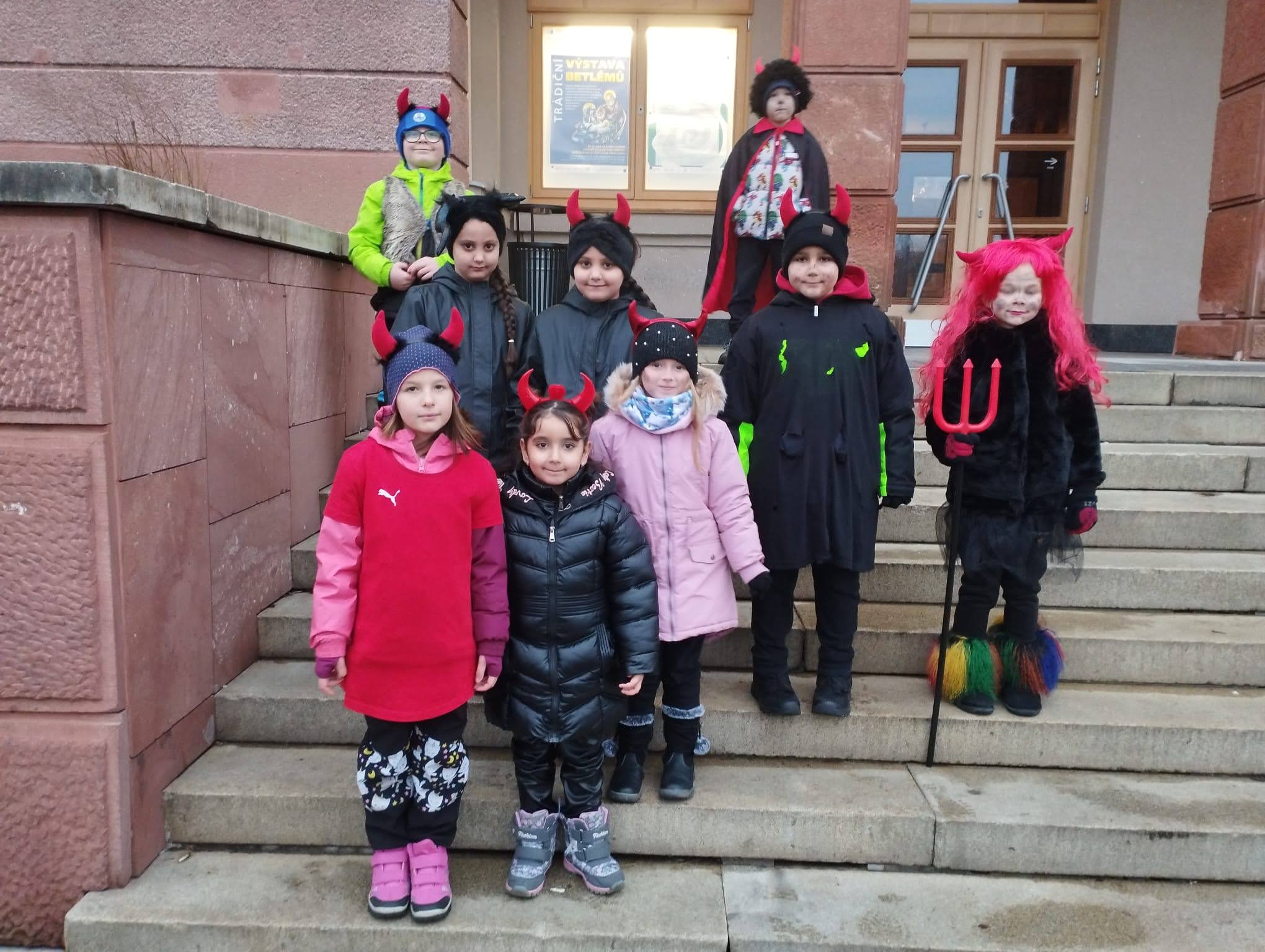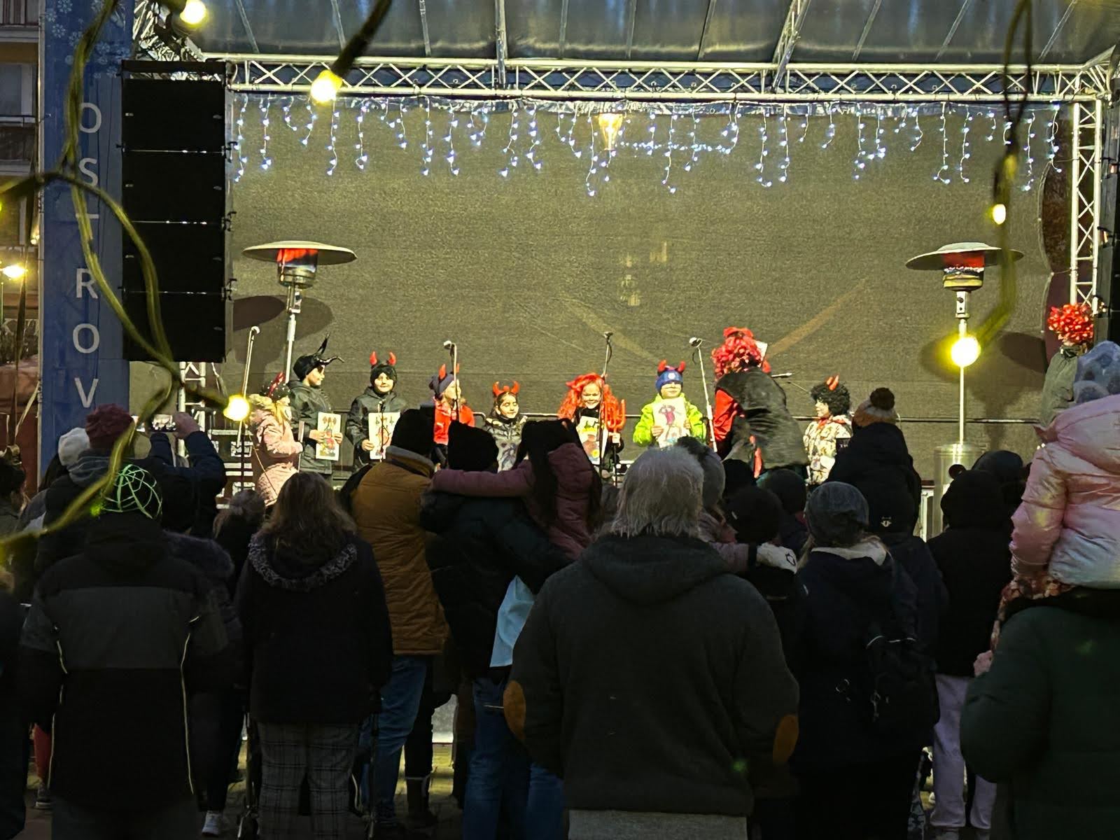 Naši žáčci, alespoň ti, kteří neonemocněli, se zasloužili o adventní program v sobotu 13. prosince na Mírovém náměstí. Naši školu zde reprezentovali zpěváčci z Májových sluníček pod vedením paní učitelky Svobodové. O druhou část programu se zasloužily děti z 1.A a současně z 1. oddělení školní družiny. Pod vedením své paní vychovatelky Šárky Jarošové převedly čertí taneček. Ostrovská veřejnost je ocenila velikým potleskem.