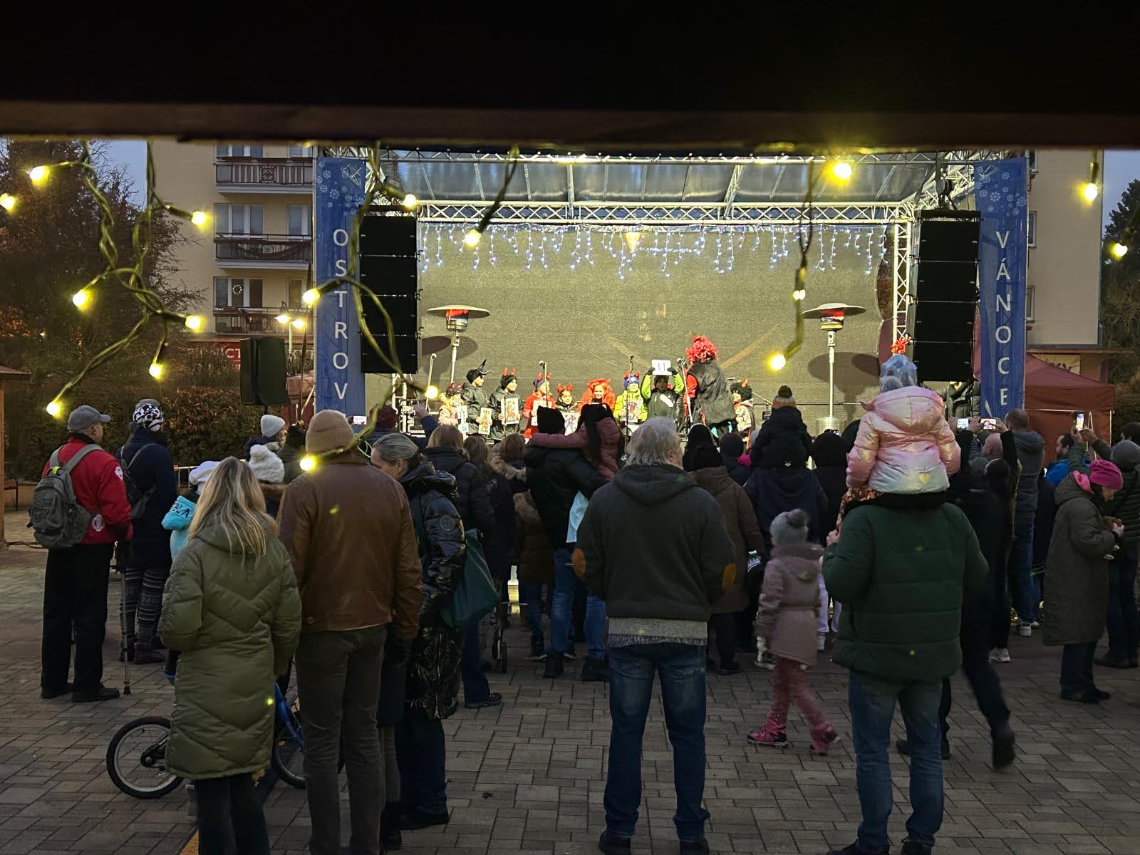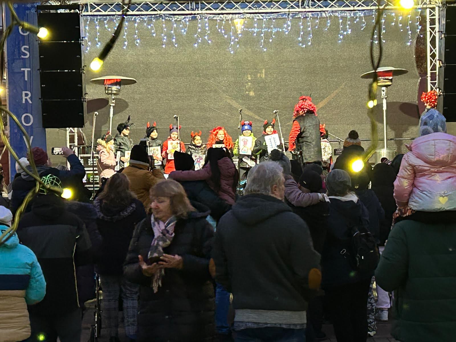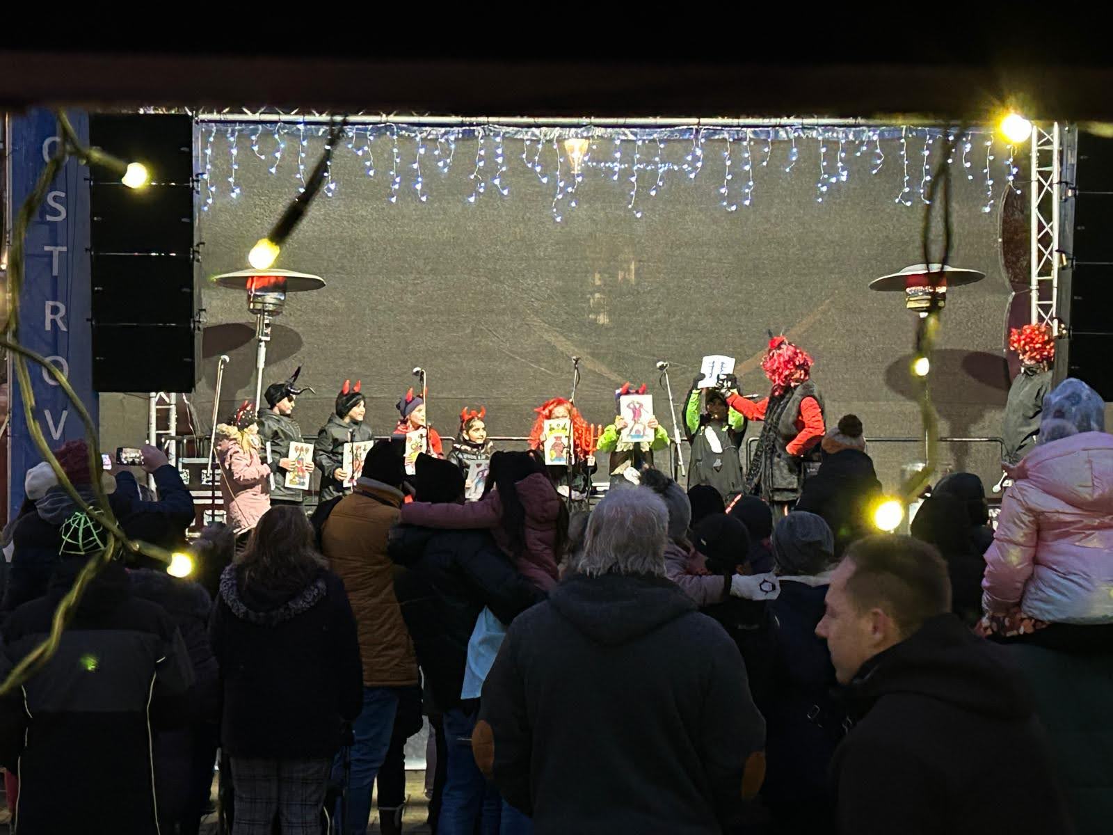 Naši žáčci, alespoň ti, kteří neonemocněli, se zasloužili o adventní program v sobotu 13. prosince na Mírovém náměstí. Naši školu zde reprezentovali zpěváčci z Májových sluníček pod vedením paní učitelky Svobodové. O druhou část programu se zasloužily děti z 1.A a současně z 1. oddělení školní družiny. Pod vedením své paní vychovatelky Šárky Jarošové převedly čertí taneček. Ostrovská veřejnost je ocenila velikým potleskem.