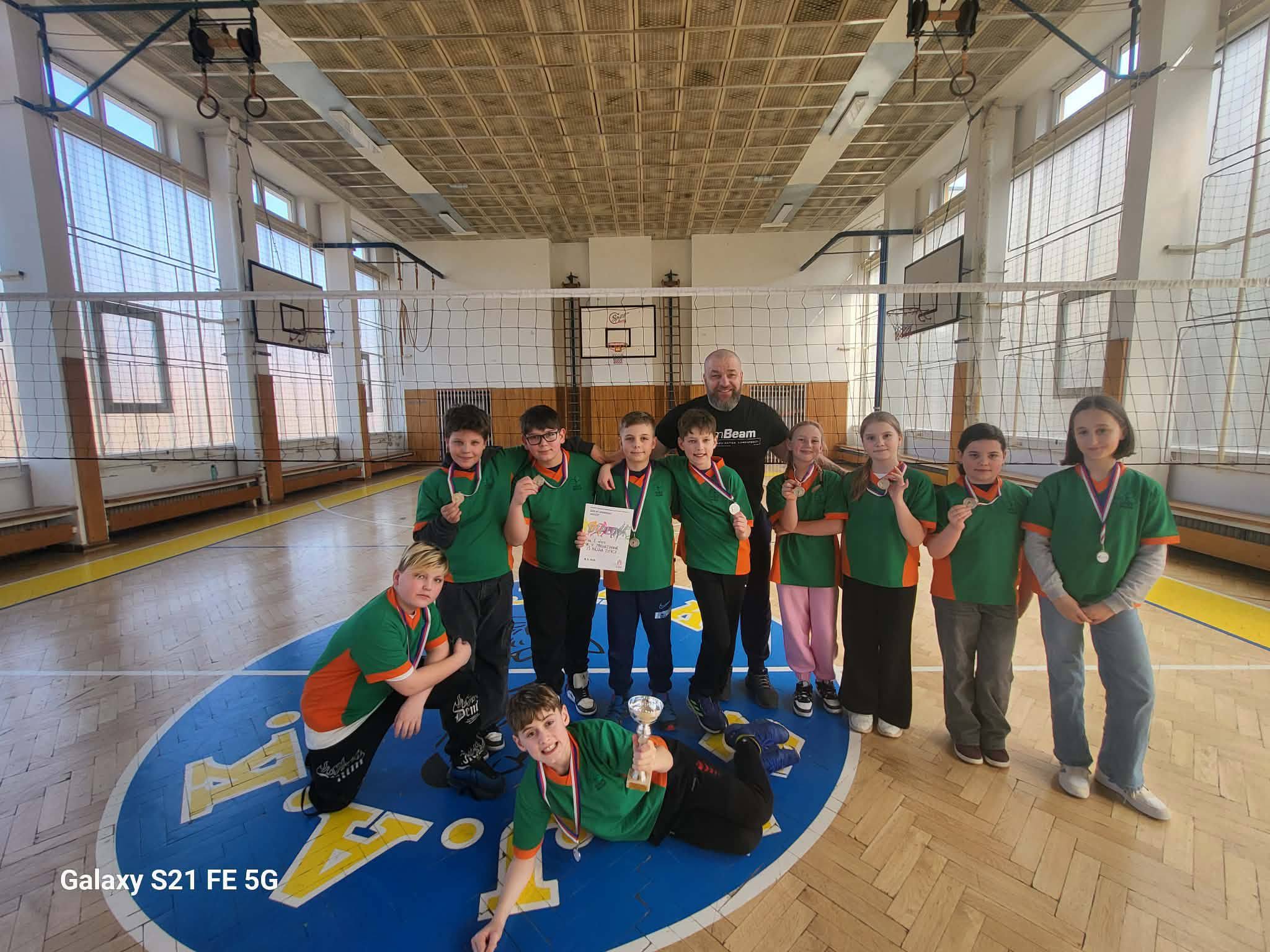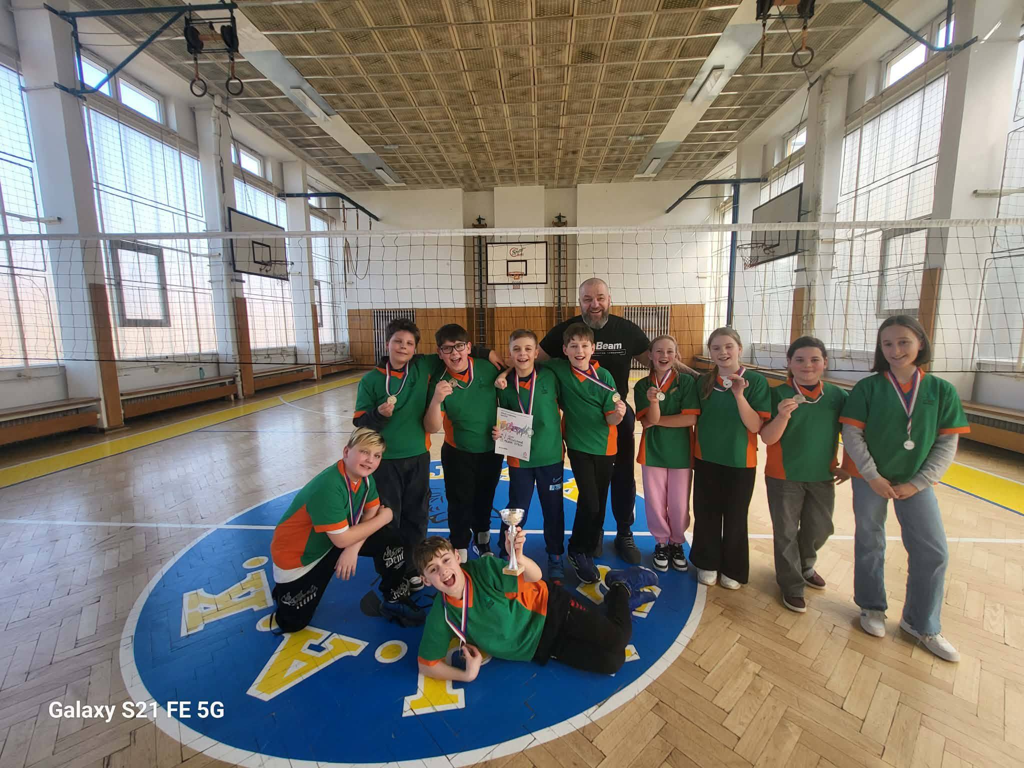Ve čtvrtek 19. března se naše družstvo sportovců z pátých tříd vypravilo do Karlových Varů na okresní kolo v přehazované. Sešlo se zde dvanáct týmů ze škol karlovarského okresu. Naši borci nám udělali velikou radost, protože jejich celodenní zápolení bylo odměněno druhým místem a postupem do krajského kola v Sokolově. Děkujeme za reprezentaci a budeme držet palce v dalším kole.