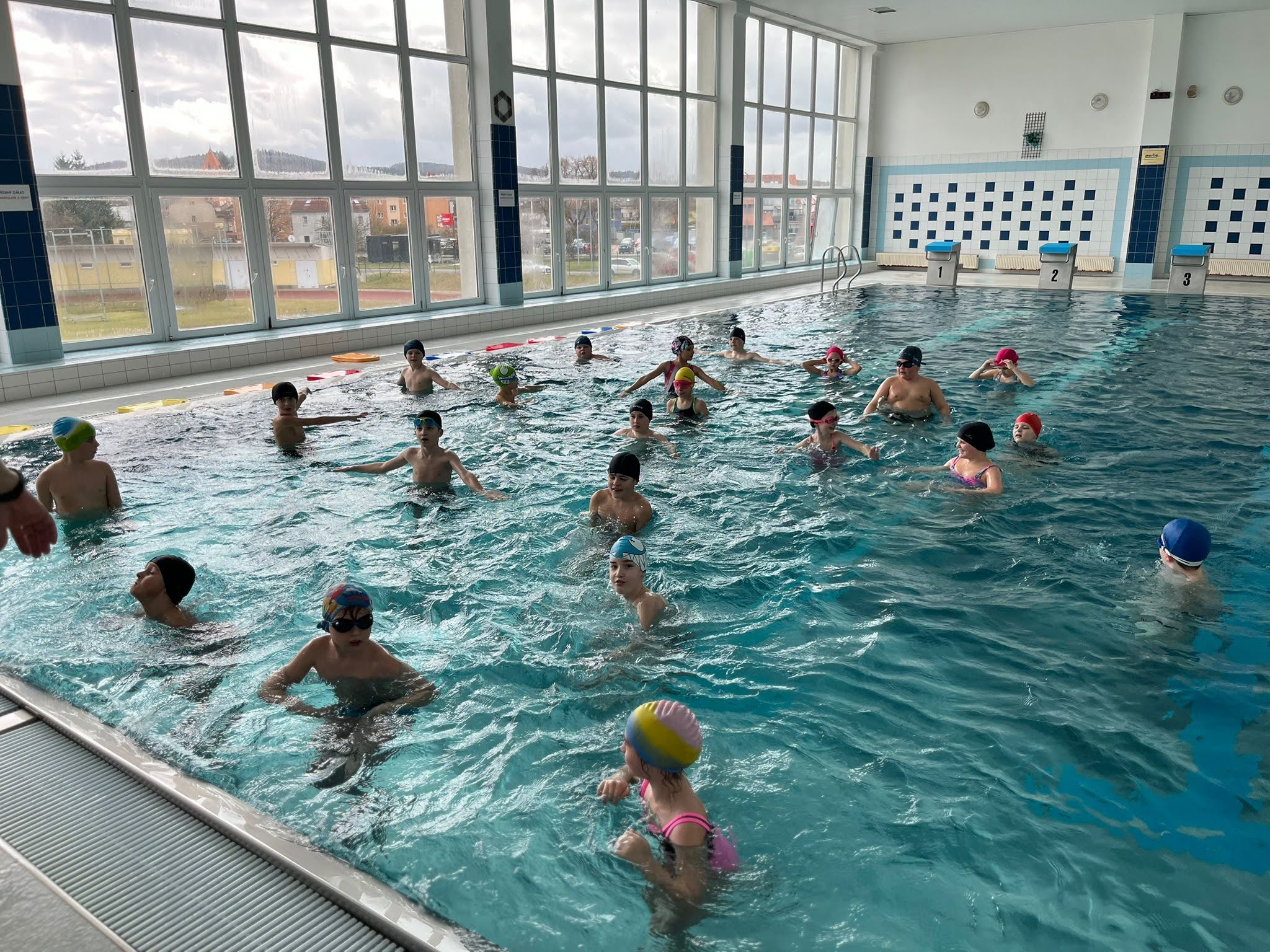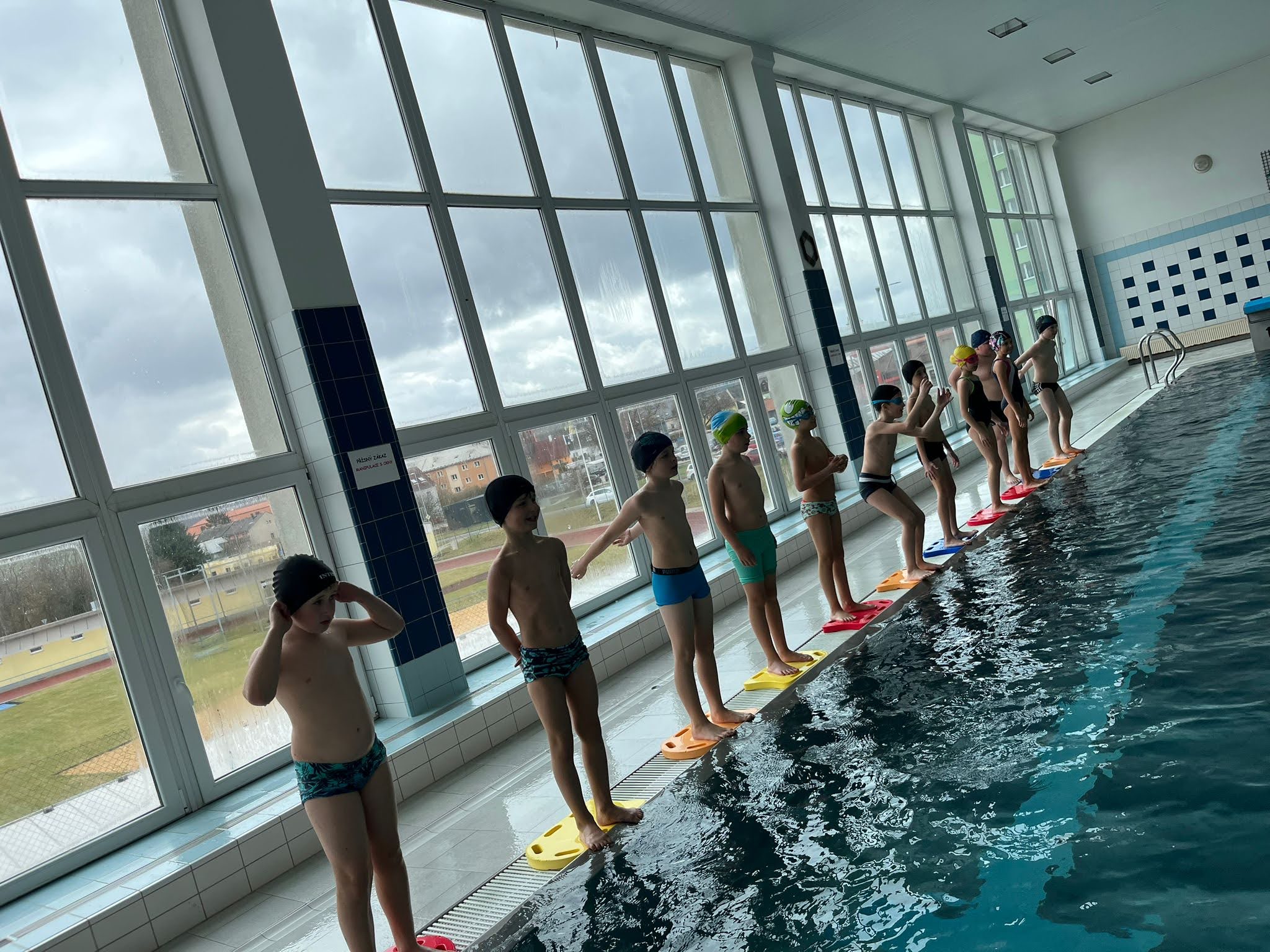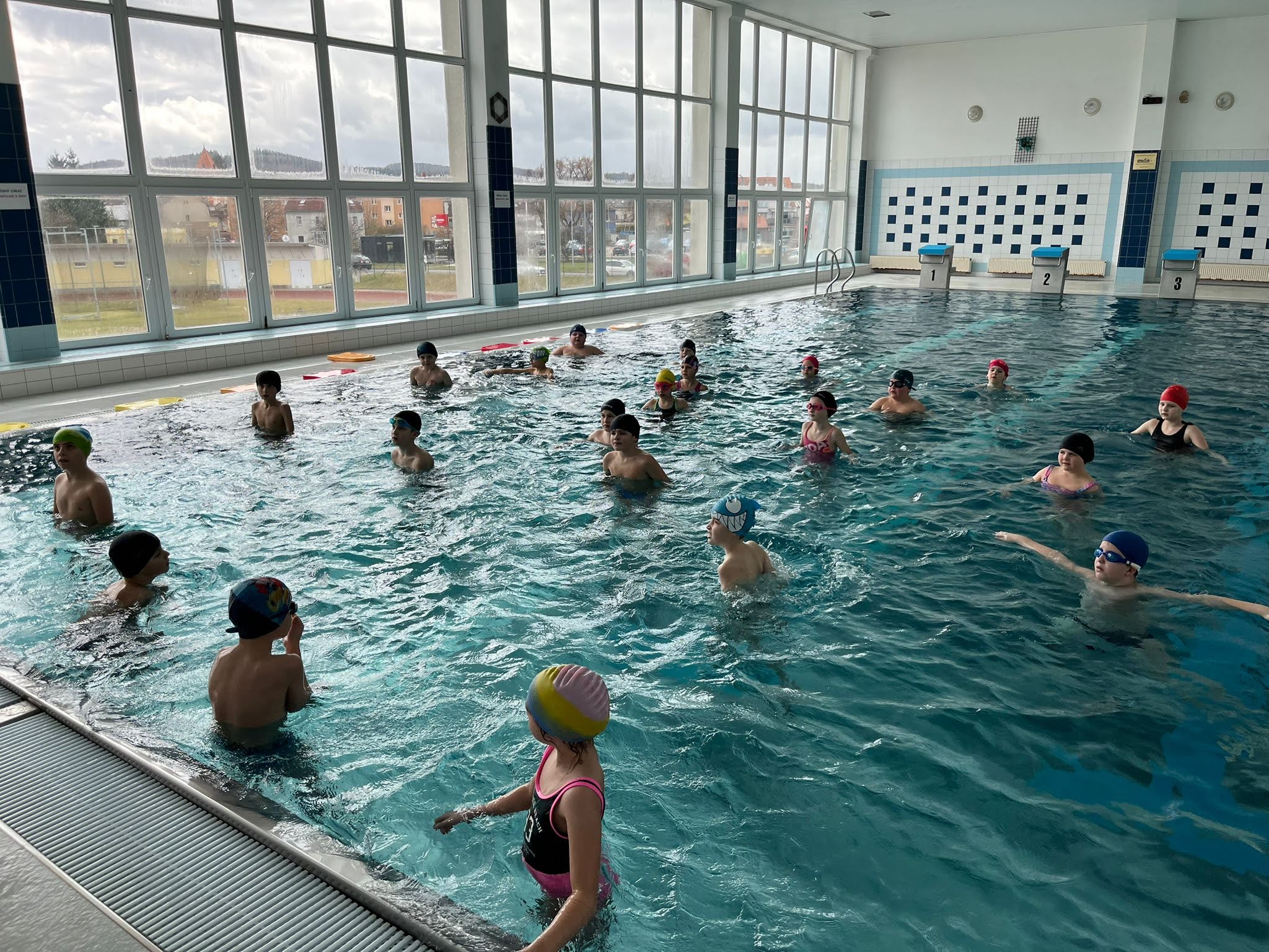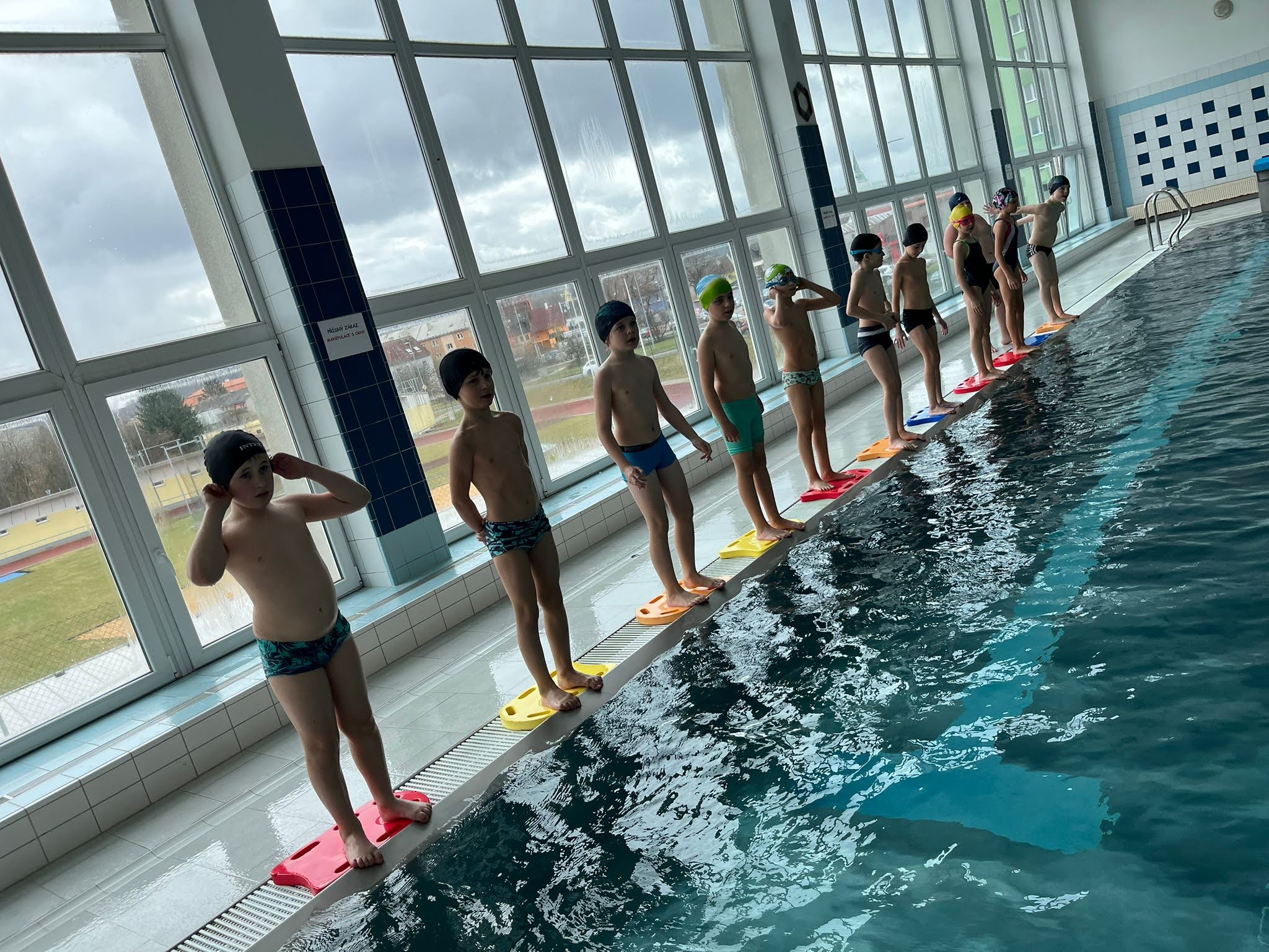 Dvě třídy třeťáků již mají svůj plavecký výcvik za sebou. Tento týden zahájily kurzy další tři třídy. Obě třídy čtvrťáků a dnes i 3.B se poprvé seznámí se svými instruktory plavání i prvními tempy v bazénu.