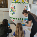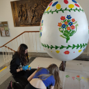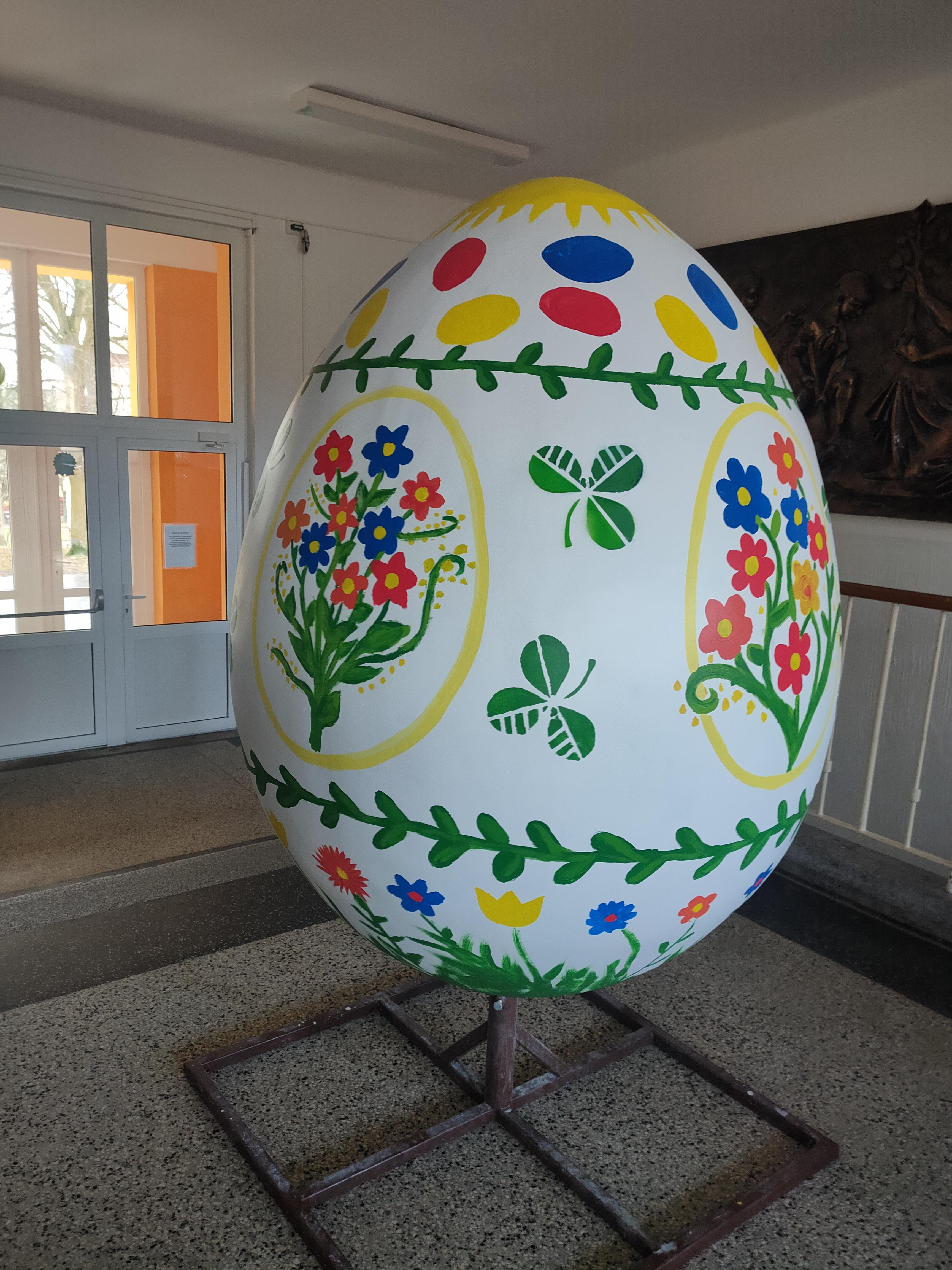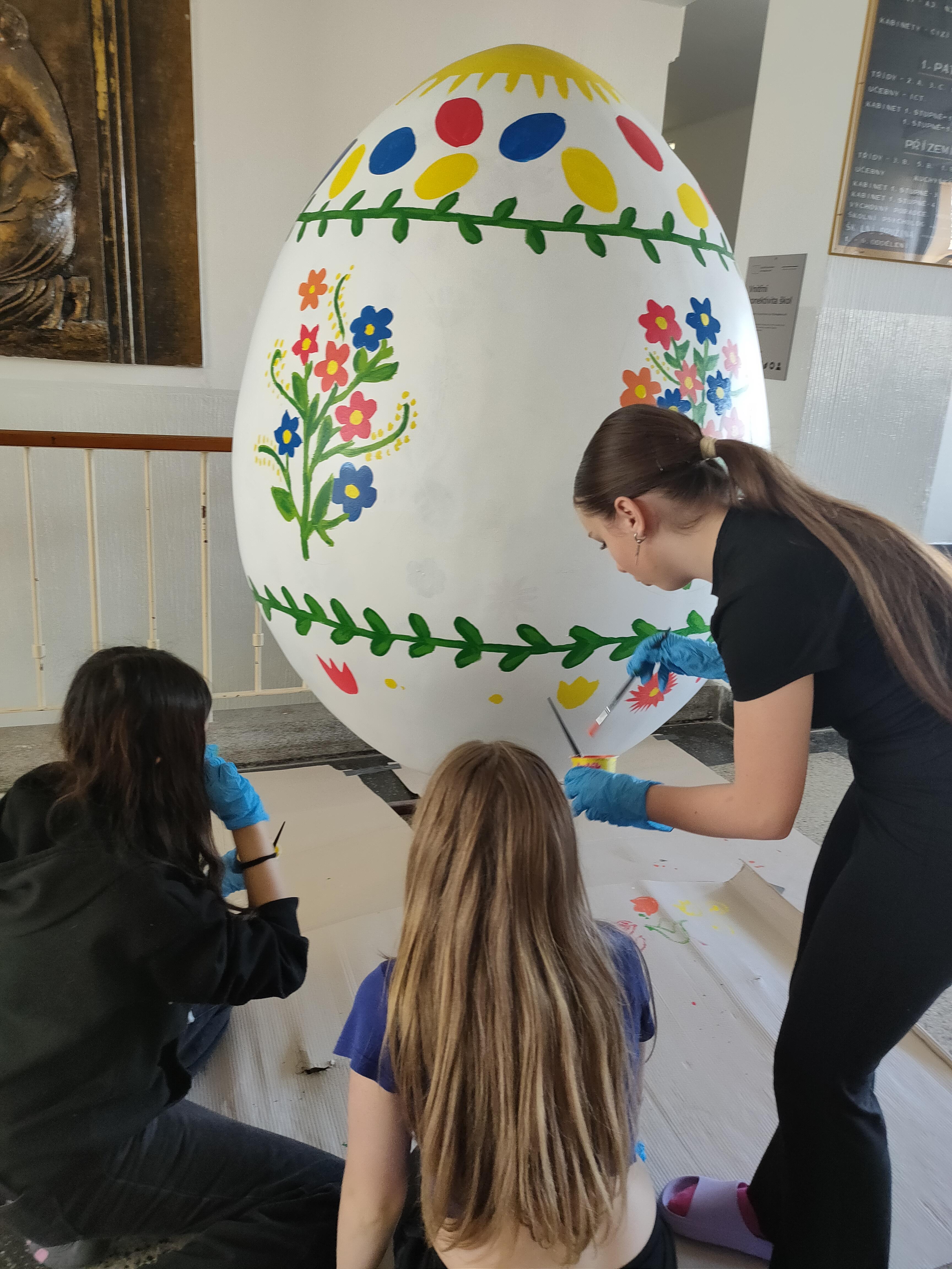 Při velikonočních slavnostech v sobotu 4. dubna jsme mohli na Starém náměstí obdivovat i obří vajíčka. V letošním roce přibyla k velkým vejcím základních škol i další menší, o jejichž výmalbu se postaraly mateřské školy. To naše vznikalo pod vedením paní učitelky Purkytové a na zdobení se podíleli žáci osmých tříd při volitelném předmětu Užité výtvarné umění. Nyní již můžeme odtajnit fotografie z průběhu jeho zdobení i jeho finální podobu. Originál bude k vidění na Starém náměstí ještě několik dní. Přijďte se podívat.