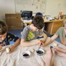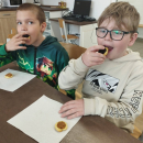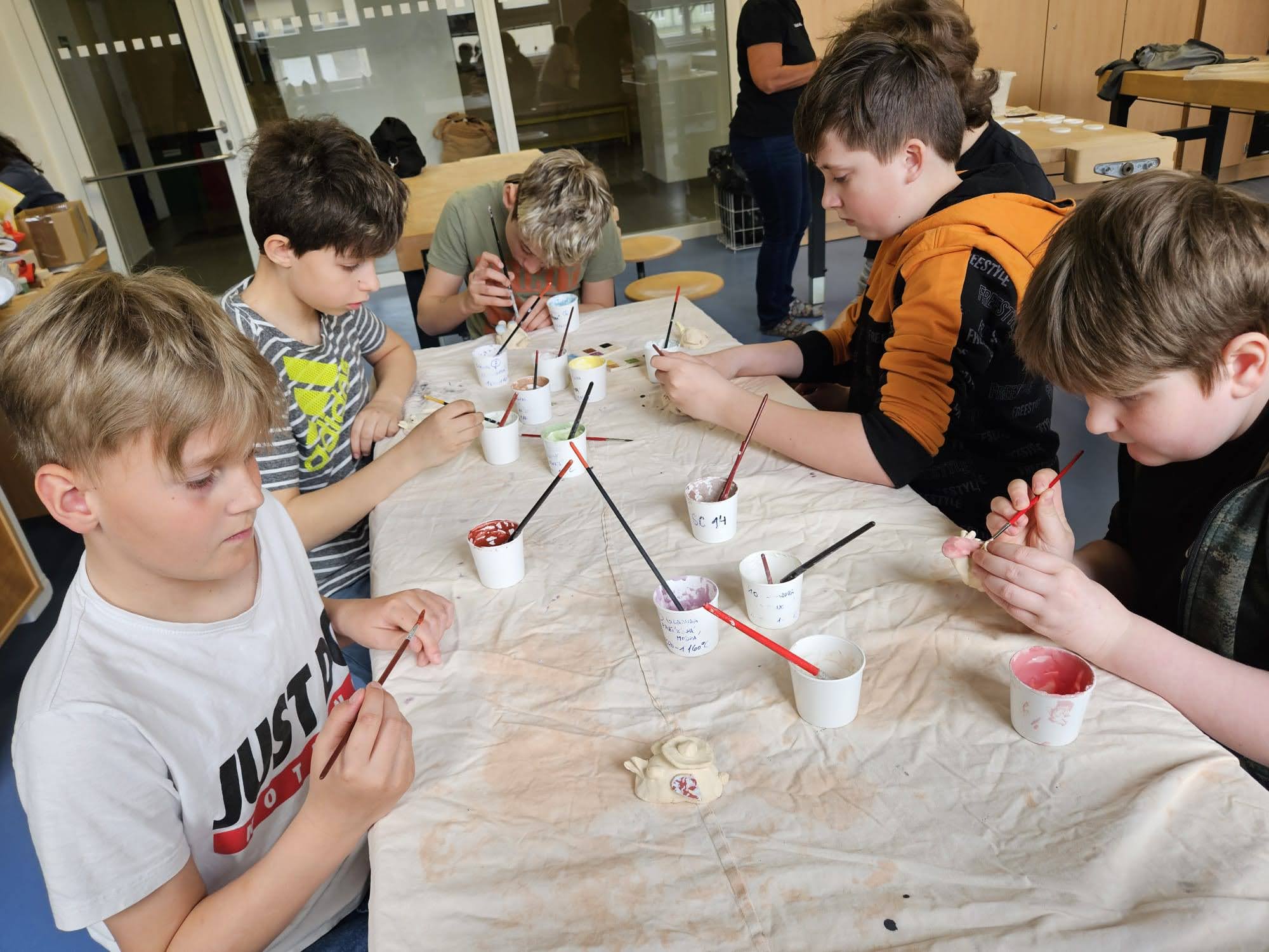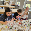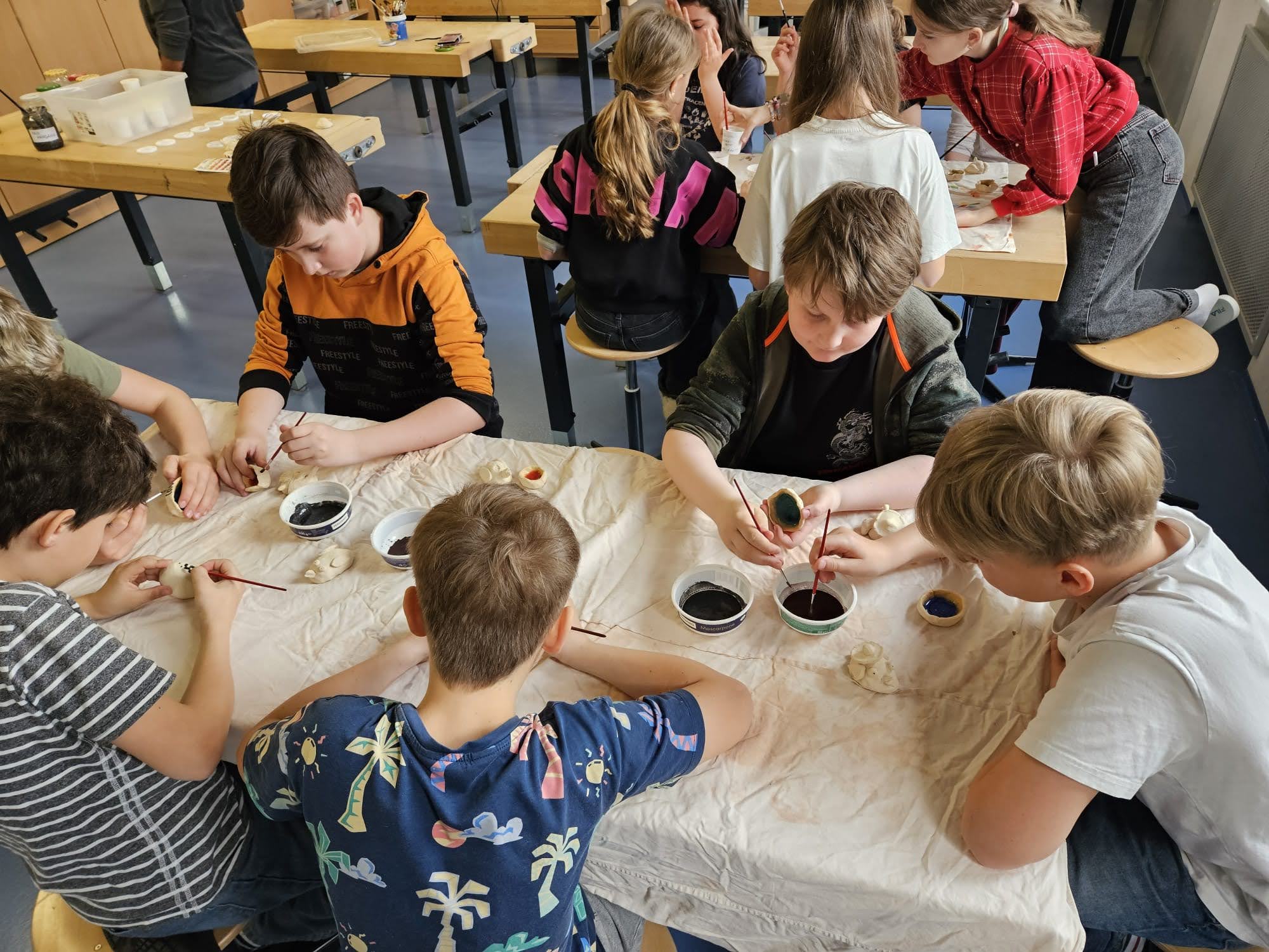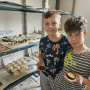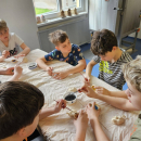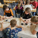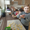 V pondělí 13. dubna se dvě naše třídy vypravily opět na ZŠ Myslbekovu v rámci projektu Udržitelnosti. V kuchyňce si své dobroty podle receptu tentokrát upekly děti z 1.A. Do keramické dílny se vrátili žáci 5.A, aby si zde naglazovali své výrobky.